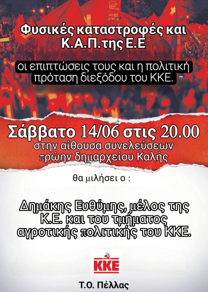 Η Τομεακή Επιτροπή Πέλλας του ΚΚΕ διοργανώνει εκδήλωση με τίτλο: