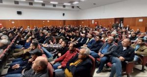 γεωπόνοι προκειμένου να ενημερωθούν από τους τρεις καθηγητές Πανεπιστημίου για
