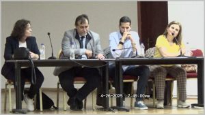 Καραπατσούδη Ελένη Ιατρός Καρδιολόγος του Νοσοκομείου Έδεσσας και Αντιδήμαρχος Υγείας του Δήμου Έδεσσας, ο Αντιδήμαρχος Βαγγέλης Τρυψιάνης Αντιδήμαρχος Παιδείας και Αθλητισμού του Δήμου Έδεσσας, η Ελένη Μίσχου Κοινωνική Λειτουργός του Δήμου Έδεσσας και ο κεντρικός ομιλητής Γιώργος Νικολαΐδης Ψυχίατρος  Διευθυντής Ψυχικής Υγείας και Κοινωνικής Πρόνοιας του Ινστιτούτου Υγείας του Παιδιού στην Αθήνα.