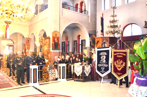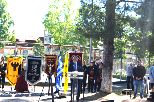 Μετά την ομιλία της Δημάρχου, ακολούθησαν χαιρετισμοί από τη Χριστίνα Ψαρρά, εκπρόσωπο των Ποντιακών Συλλόγων Ν. Πέλλας, και τον Ιωάννη Κυριακίδη, εκπρόσωπο των απογόνων του Πόντιου Οπλαρχηγού Βασίλειου Ανθόπουλου. Ο Ευστάθιος Ευθυμιάδης διάβασε το ψήφισμα των εκπροσώπων των Ποντιακών Συλλόγων, κάνοντας μια συγκινητική εισαγωγική παρουσίαση στην ποντιακή διάλεκτο.