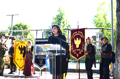 Η Δήμαρχος εξέφρασε την ευγνωμοσύνη προς τους προγόνους που διατήρησαν και προήγαγαν τις αρχές και αξίες του Ελληνισμού ως “διαχρονικοί φωτοδότες κι Ακρίτες”, καθώς και στους ξεριζωμένους Έλληνες που, παρά τις δυσκολίες, συνέβαλαν τα μέγιστα στην αναγέννηση της Ελλάδας.