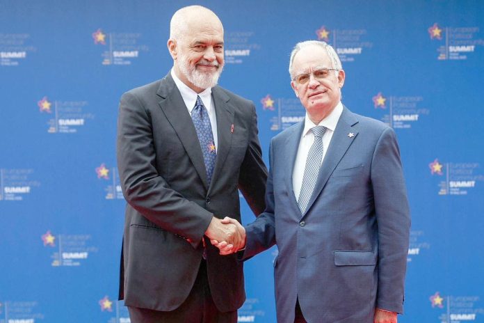 Όπως μετέδωσε η ΕΡΤ, ο κ. Τασούλας συνομίλησε με τον πρόεδρο του Ευρωπαϊκού Συμβουλίου, Αντόνιο Κόστα, την Πρόεδρο της Κομισιόν Ούρσουλα φον ντερ Λάιεν και τον οικοδεσπότη Αλβανό Πρωθυπουργό Έντι Ράμα (φωτό).