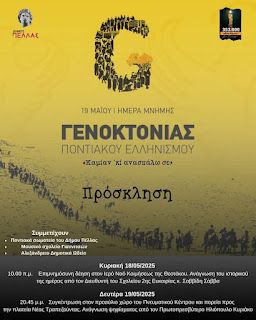 Σύμφωνα με το πρόγραμμα τιμής και μνήμης της 106ης Επετείου για τα θύματα της Γενοκτονίας του Πόντου, την Κυριακή 18 Μαϊου 2025, στον Ι.Ν.  Κοιμήσεως της Θεοτόκου (Μητρόπολη) Γιαννιτσών, στις 8.00 το πρωί, τελέστηκε Θ. Λειτουργία και επιμνημόσυνη δέηση και στη συνέχεια εκφωνήθηκε ομιλία για το θλιβερό ιστορικό της ημέρας καθώς και τη Μικρασιατική Καταστροφή συνολικά, από τον Διευθυντή του Σχολείου Δεύτερης Ευκαιρίας, κ. Σάββα Σαββίδη. Για την πλήρη ομιλία του κ. Σαββίδη πατήστε εδώ.