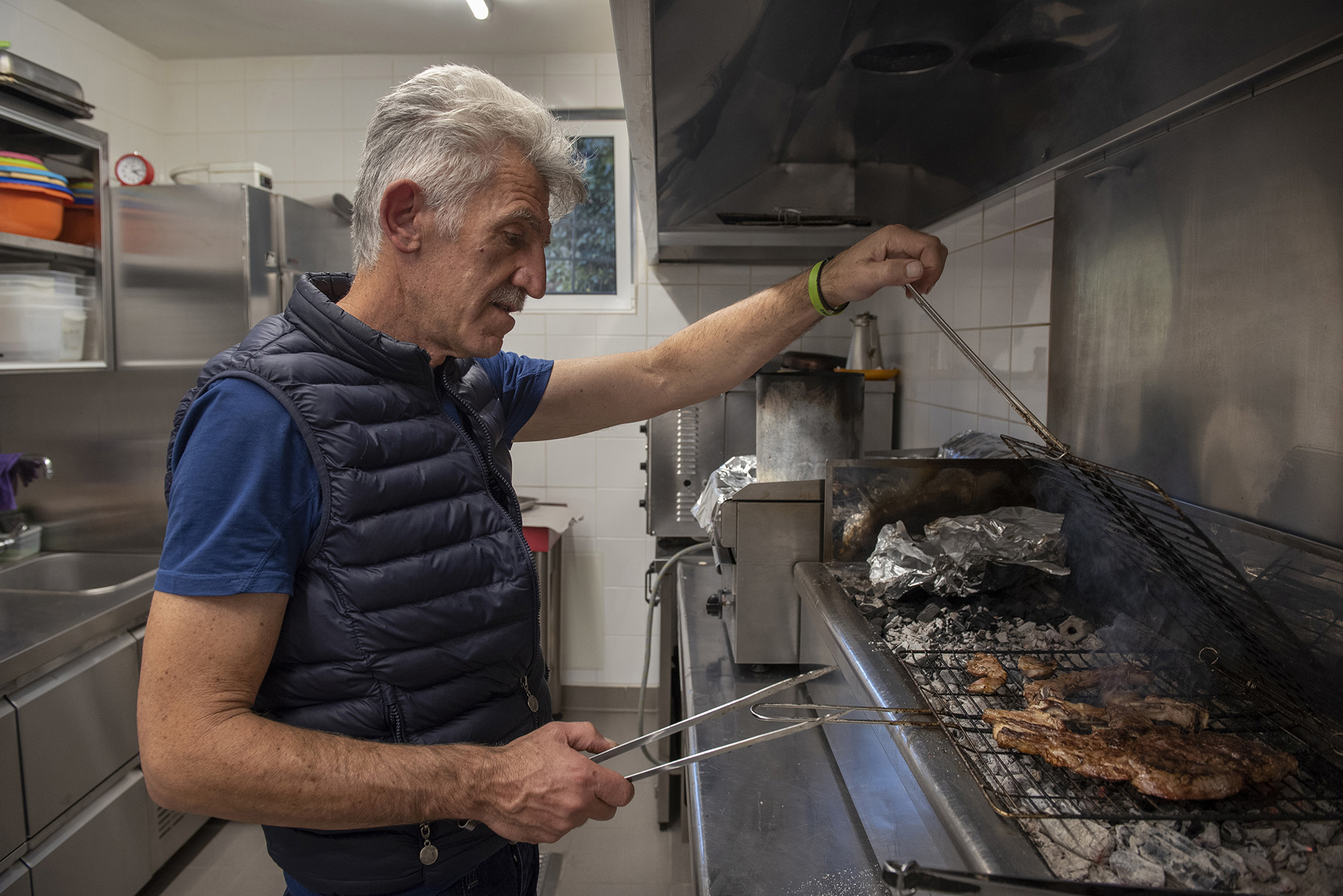 Στα ψητά στη σχάρα είναι ο Αλέκος, ο σύζυγος της Βιργινίας που ξέρει από κρέας και ψήνει νόστιμα ζουμερά παϊδάκια, και αφράτο μπιφτέκι με 100% μοσχαρίσιο κιμά.